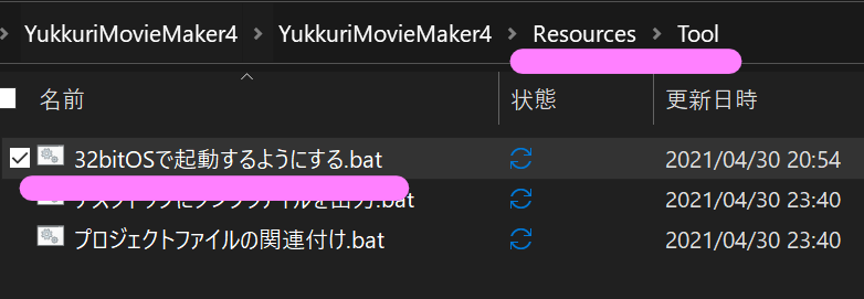 フォルダパスは「<ダウンロードディレクトリ>\YukkuriMovieMaker4\キャラ素材\新れいむ\新れいむ\」のようにしています。解凍ソフトによっては「新れいむ」が1つのものや上記みたいに2つになるものがあります。