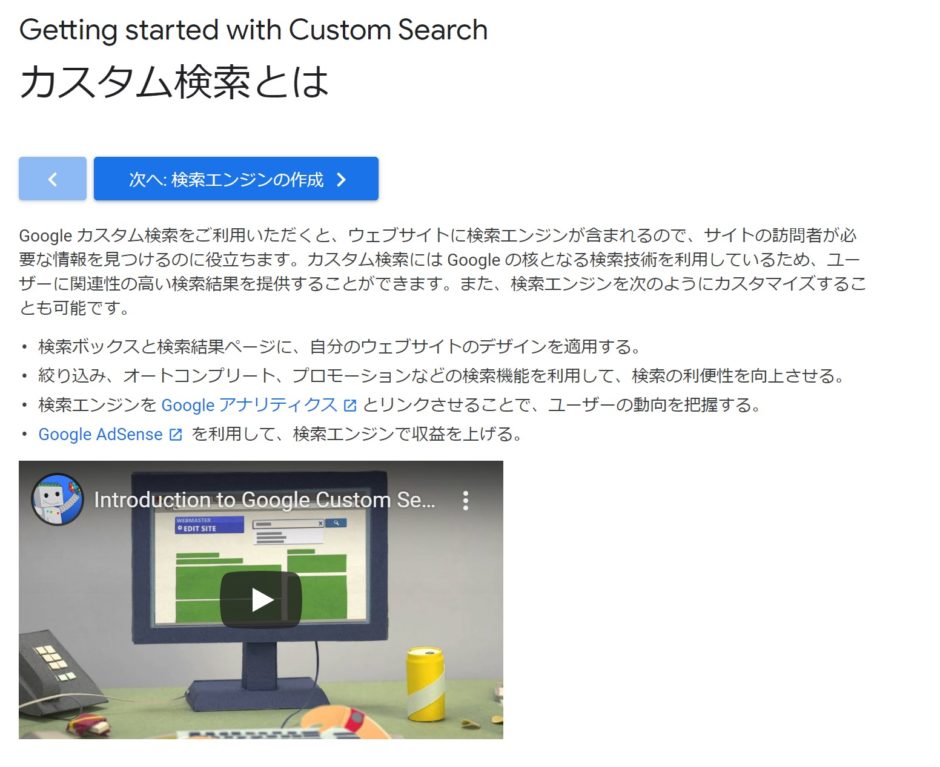 下記をクリックするとGoogleカスタム検索の作成画面が表示されます。