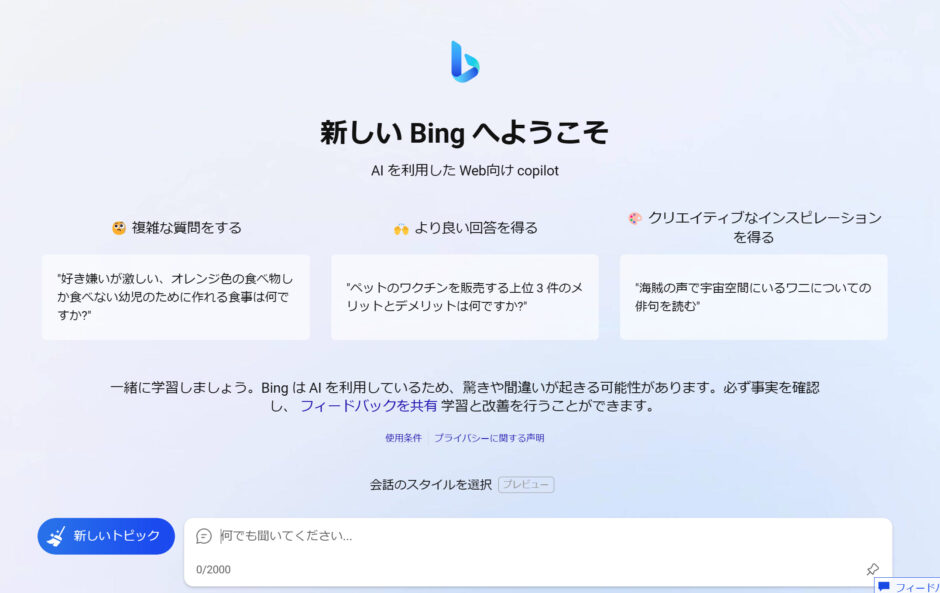 BingのAIチャットのサイトがあるものと思っていたのですが、全然違いました。